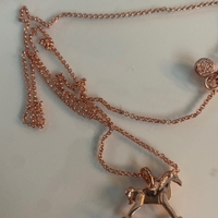 Ruusukullan värinen kaulakoru keinuhevos-riipuksella