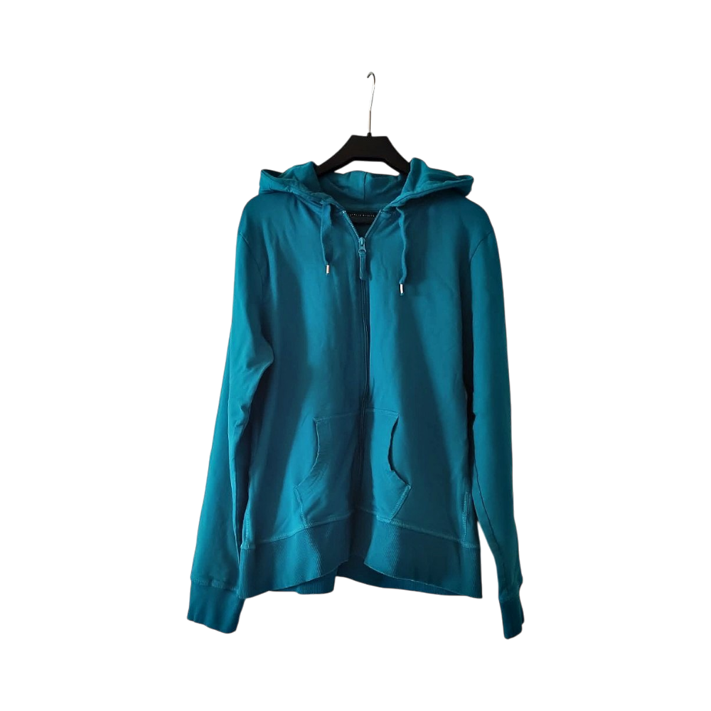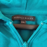 Turkoosi vetoketjuhuppari, taskuilla, koko XXL. Vastaa kokoa 46/48. Joustaa hyvin!