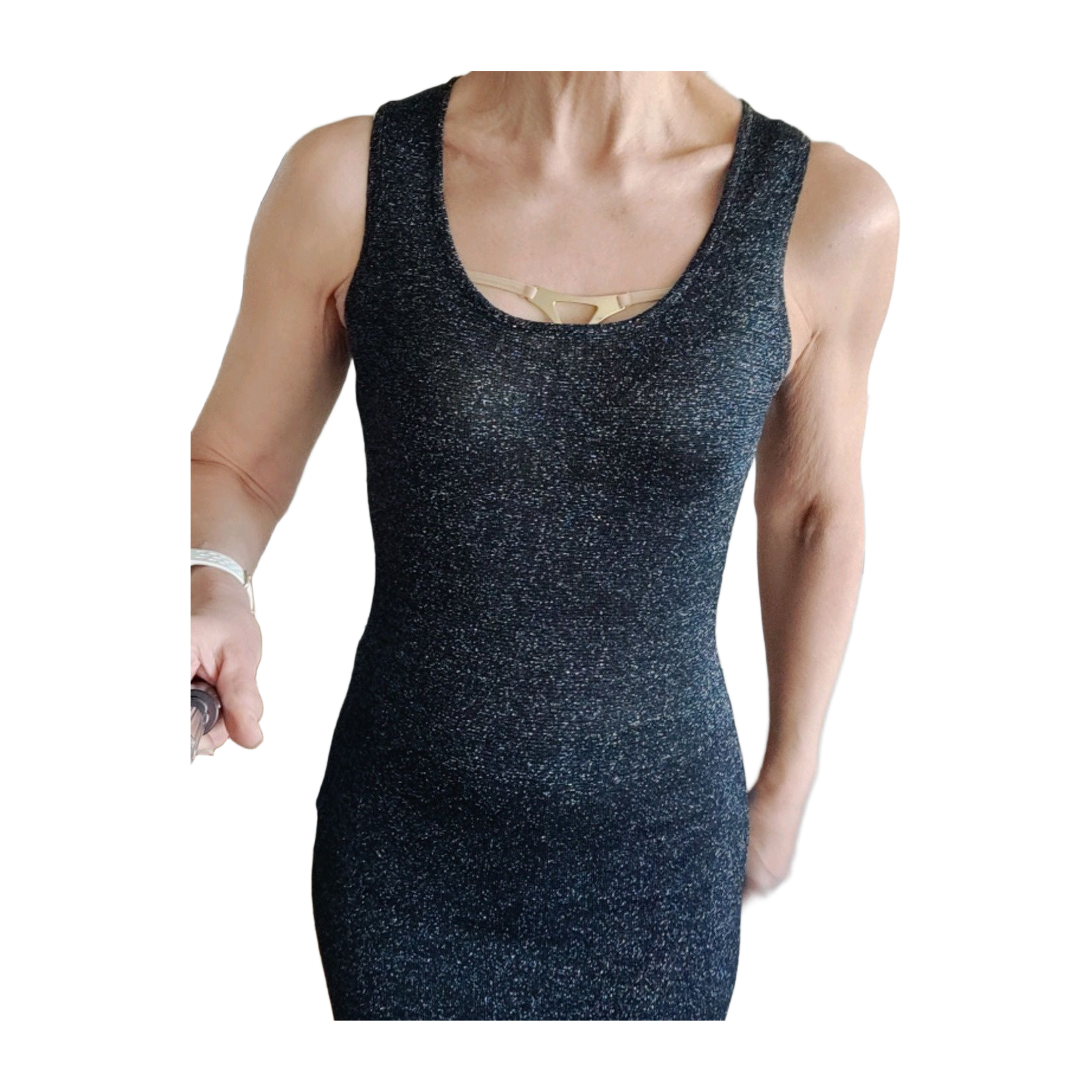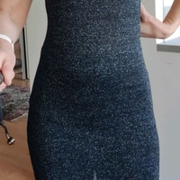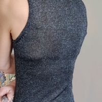 Musta tunika, jossa on hopeanvärisiä lurexlankoja.