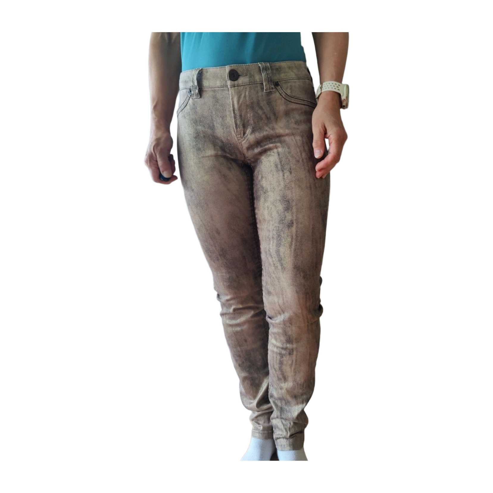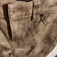 Kullanväriset slim leg farkut, takataskut ja piilotaskut edessä. Koko 34* vyötärön ympärys noin 72 cm, sivumitta noin 98 cm* lahkeen leveys noin 13 cm . Kokomerkintä 34.