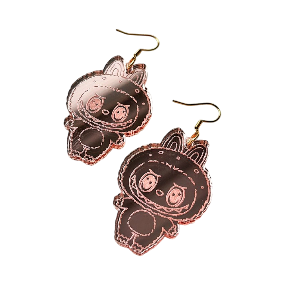 Kevyet vaaleanpunaiset akryylikorvikset kultaisilla koukuilla.