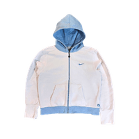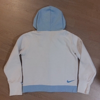 Valkoinen huppari vaaleansinisillä yksityiskohdilla