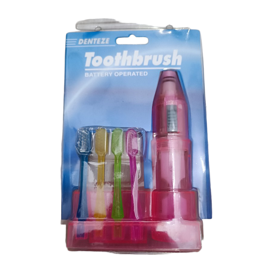 Pinkki patterikäyttöinen hammasharja neljällä vaihtopäällä