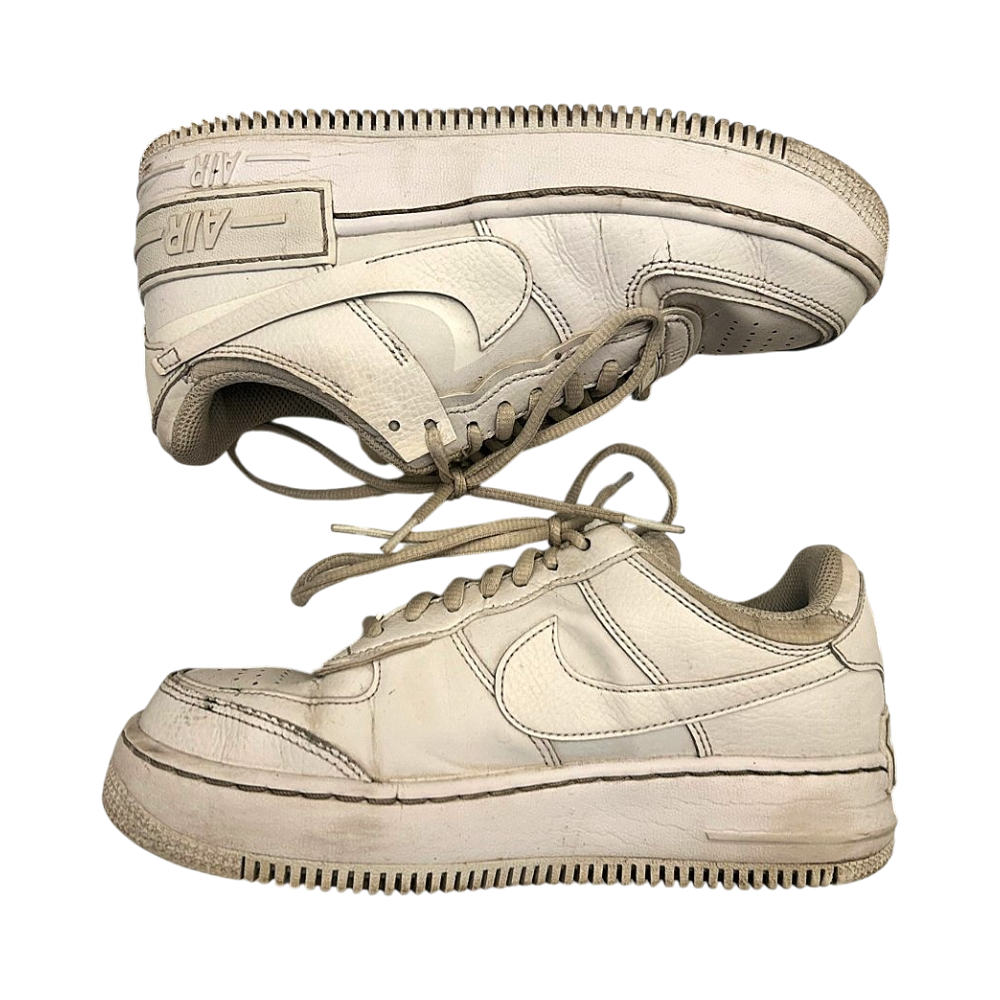 Käytetyt Nike Air Force platform-tennarit valkoisina.