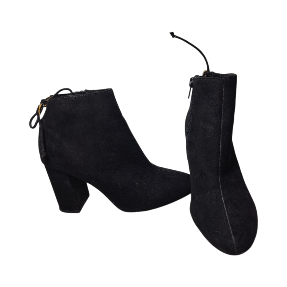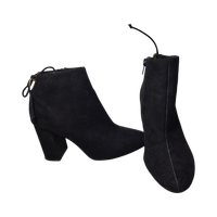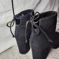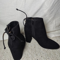 Mokkanahkaiset mustat nilkkurit, vetoketju ja korollinen malli.