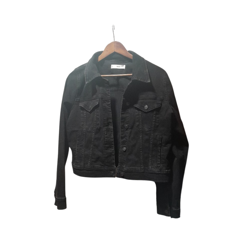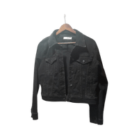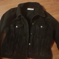 Lyhyt musta farkkutakki, napit edessä, rintataskut.