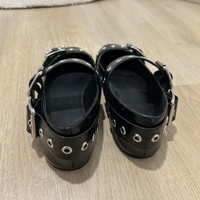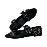 Matalat mustat ballerinat metallisilla soljilla, koko 39, kiilotanhkaa (teko)