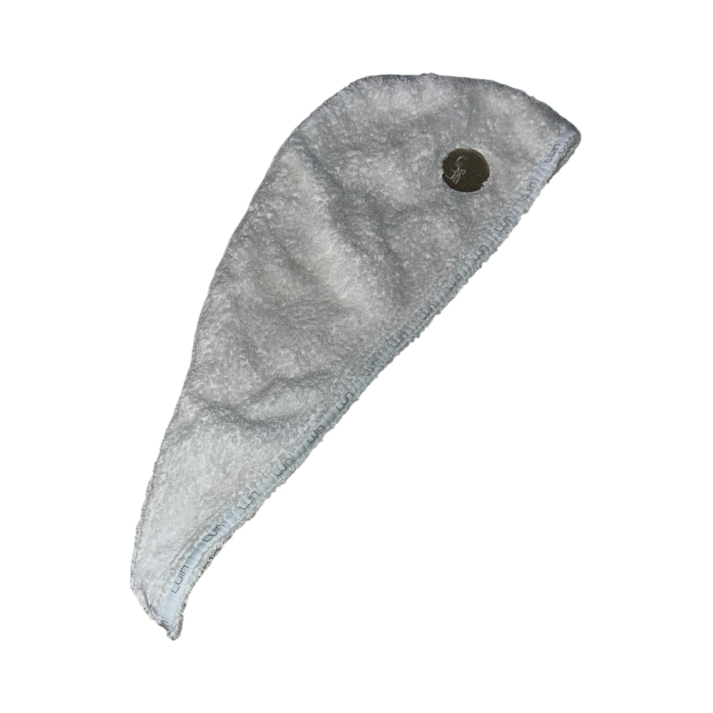hyväkuntoinen LUIN spa hiuspyyhe, nappi kiinnityksellä