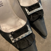 Mustat satiinikorkokengät
