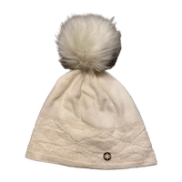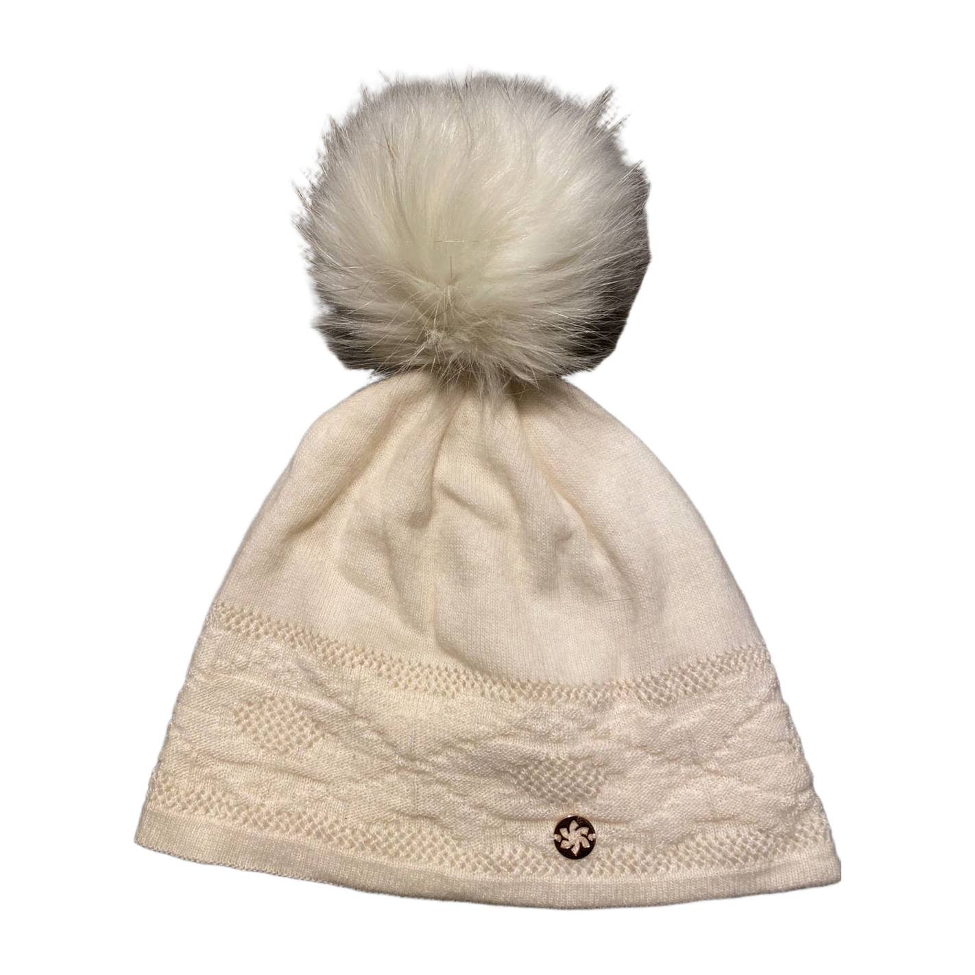 Valkoinen kashmir-pipo, karvatupsu (synteettinen), helmiäiskoristelu