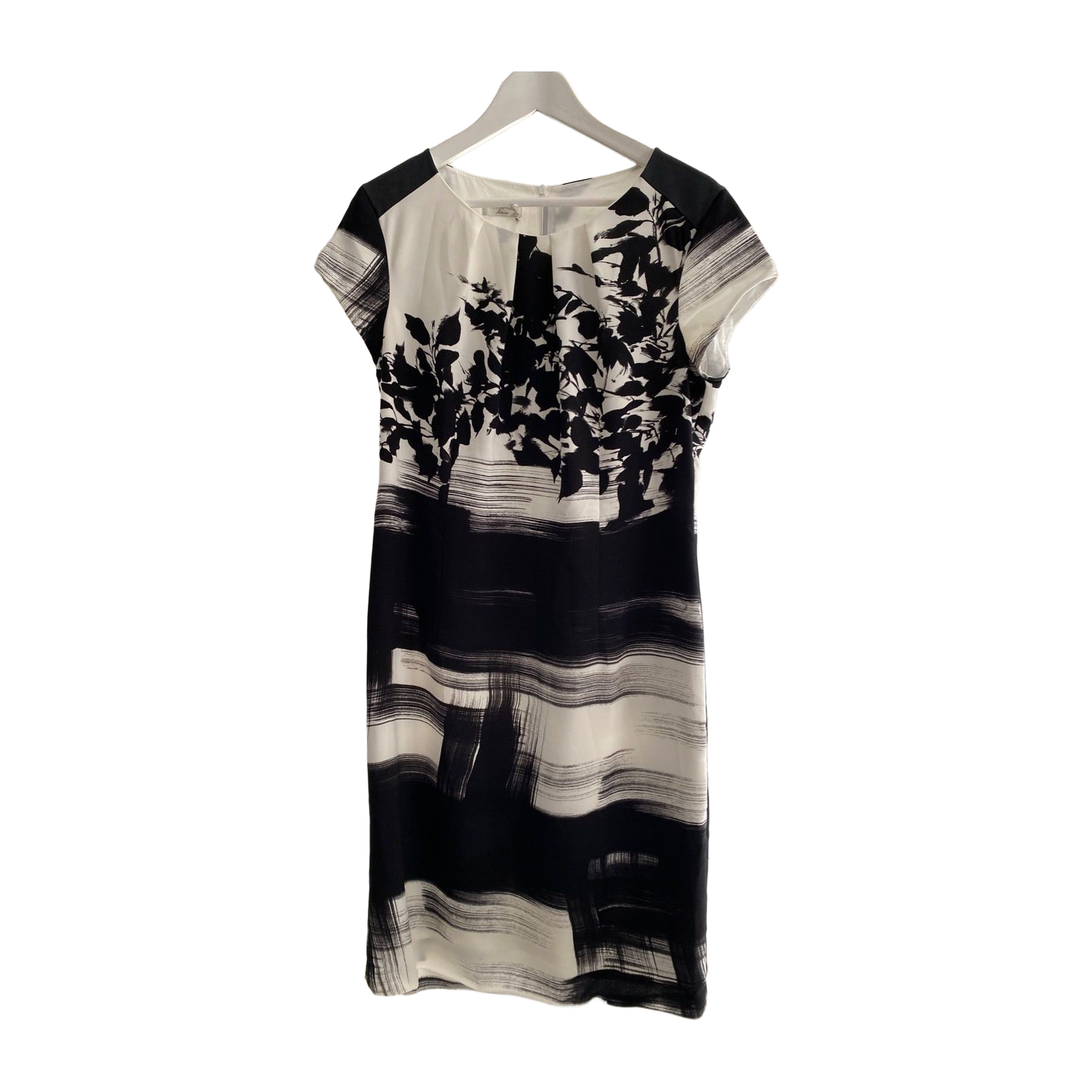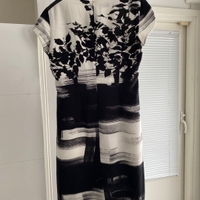 Hyväkuntoinen kotelomekko, olkapäät nahkaa. Takana vetoketju.