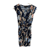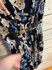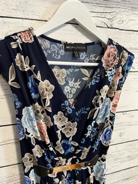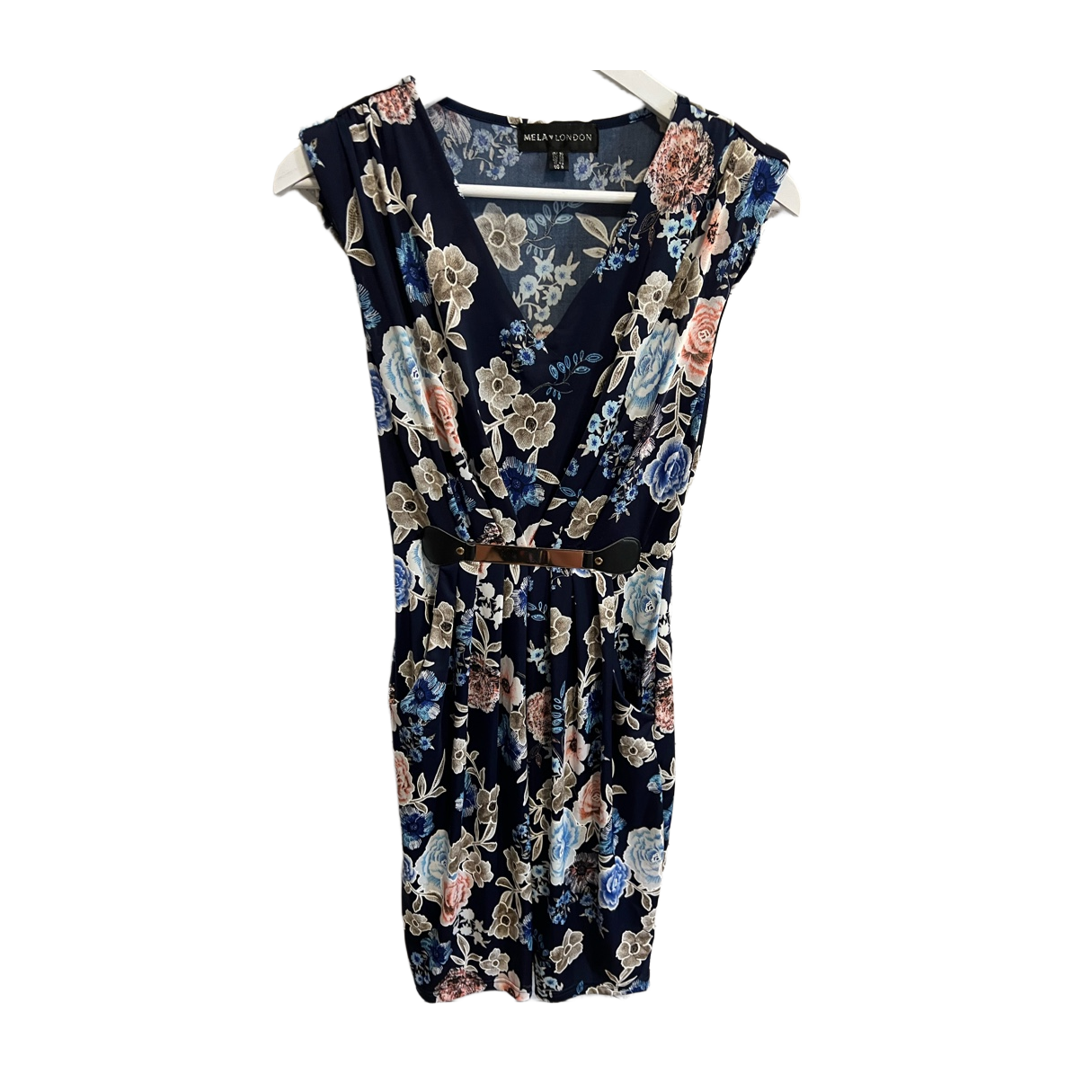 Kaunis kukkakuosinen mekko, hyvässä kunnossa. Koko M. Vyötäröllä koriste. Sivuilla taskut. Käytetty vain kerran juhlissa.