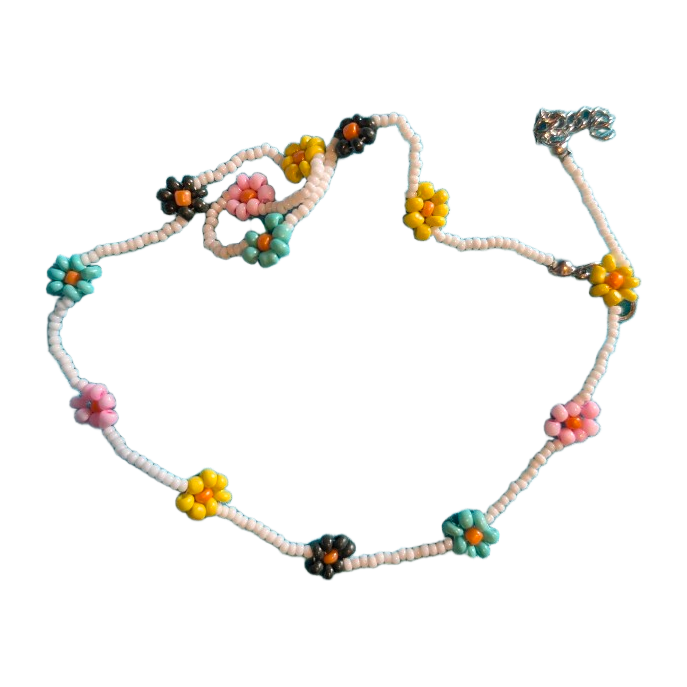 Handmade necklace with colorful flower beads.