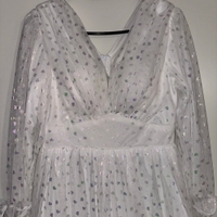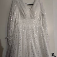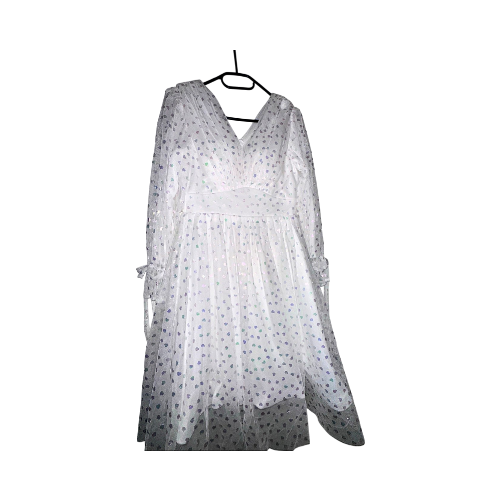 Ihana valkoinen puku koristettuna sydänkuvioilla. S koko