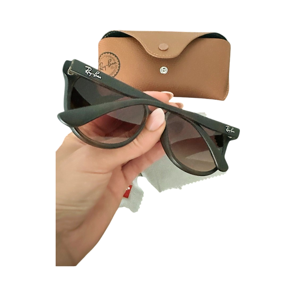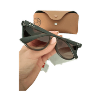 Ray-Ban mustat aurinkolasit suojakotelolla ja liinalla
