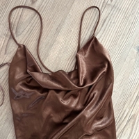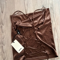 Käyttämätön satiinitoppi, nyöritys selässä. Koko sa, pituus noin 38cm, ilman olkaimia mitattu. Vesiputous kaula-aukko. Hintalappu kiinni