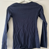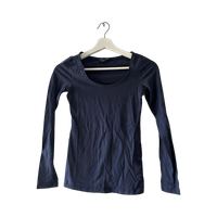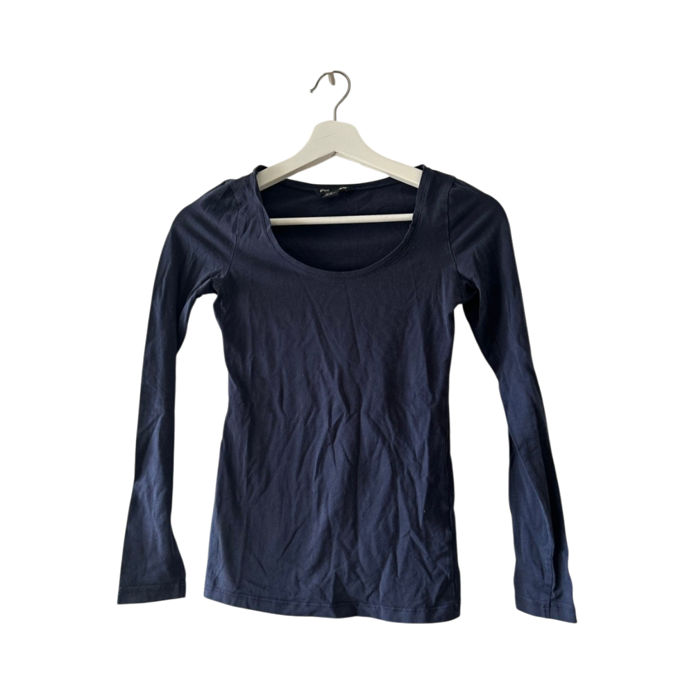 Yksinkertainen, pyöreäkauluksinen pitkähihainen paita.