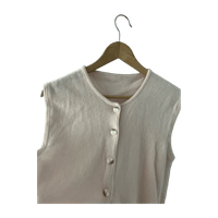 Pehmoinen hihaton neuletakki, angorasekoitetta. Hyvässä kunnossa. Sopii arviolta koossa s-m, pituus 46cm ja kai kai mitta 50cm.