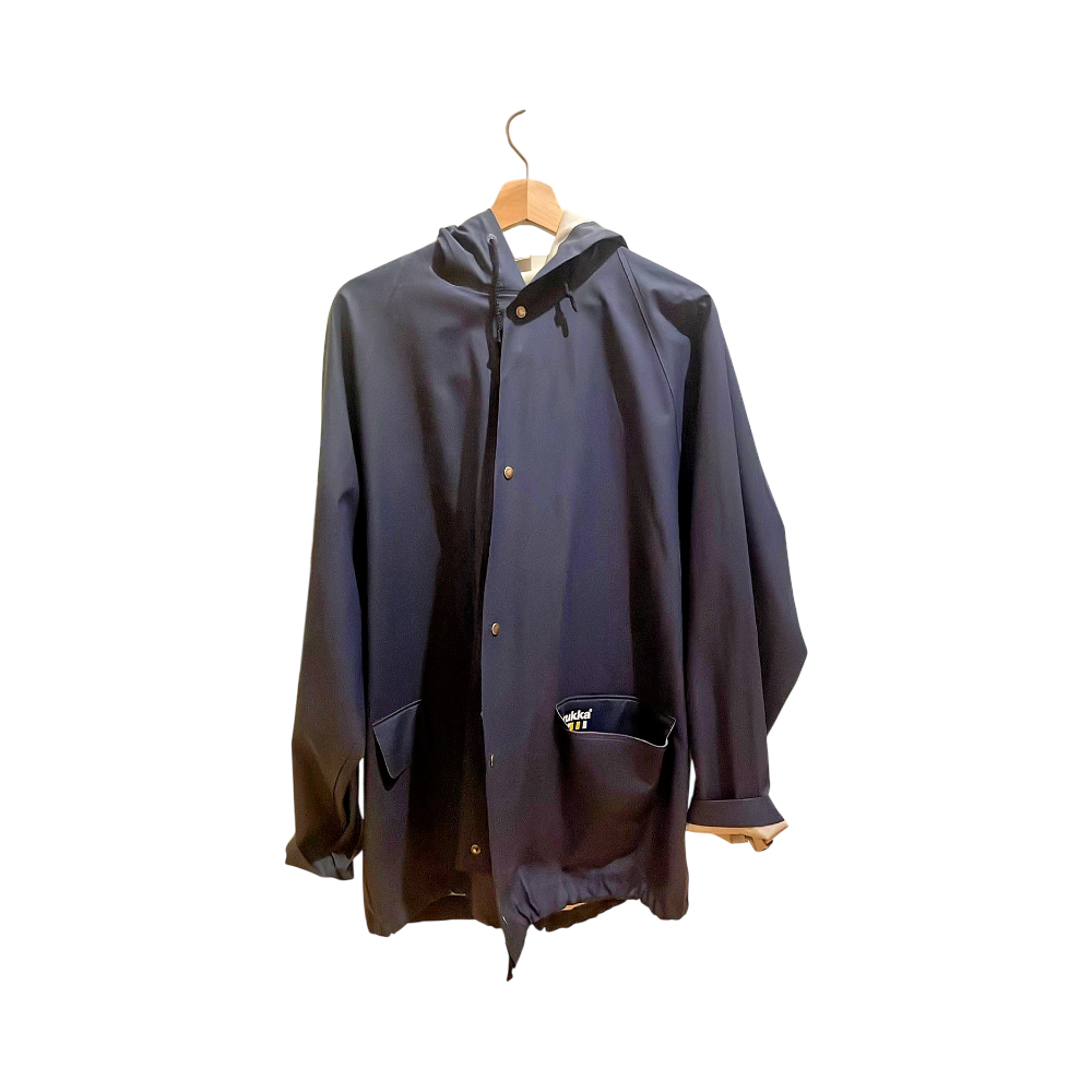 Koon L Rukka-sadetakki. Katu-uskottava kaikkialla paitsi Ultra Bran keikalla. Hyvässä kunnossa mutta ei uusi.