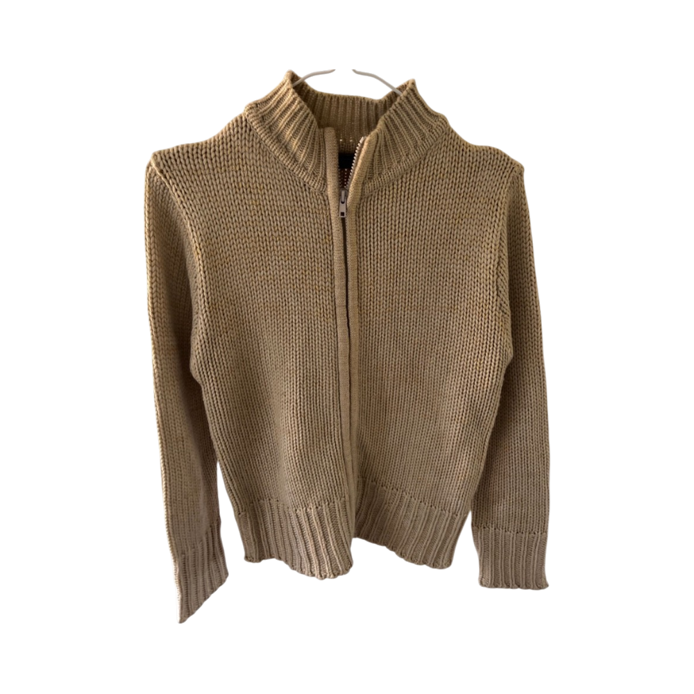 Chunky ribbed zip cardigan with subtle gold lurex threading. Vintage / y2k