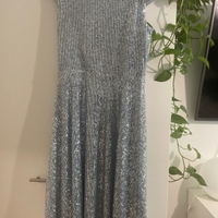 Kerran häissä päällä ollut juhlava mekko, vaaleansininen satiini