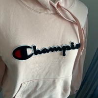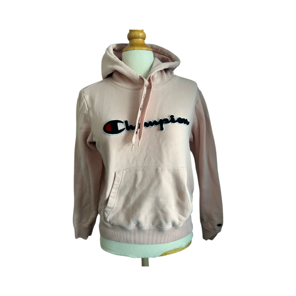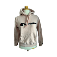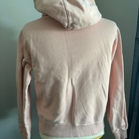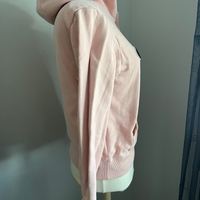 Vaaleanpunainen naisten huppari, etuapplikaatio, vetoketjuton tasku.