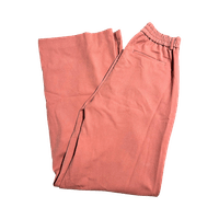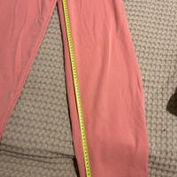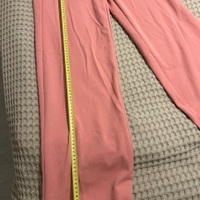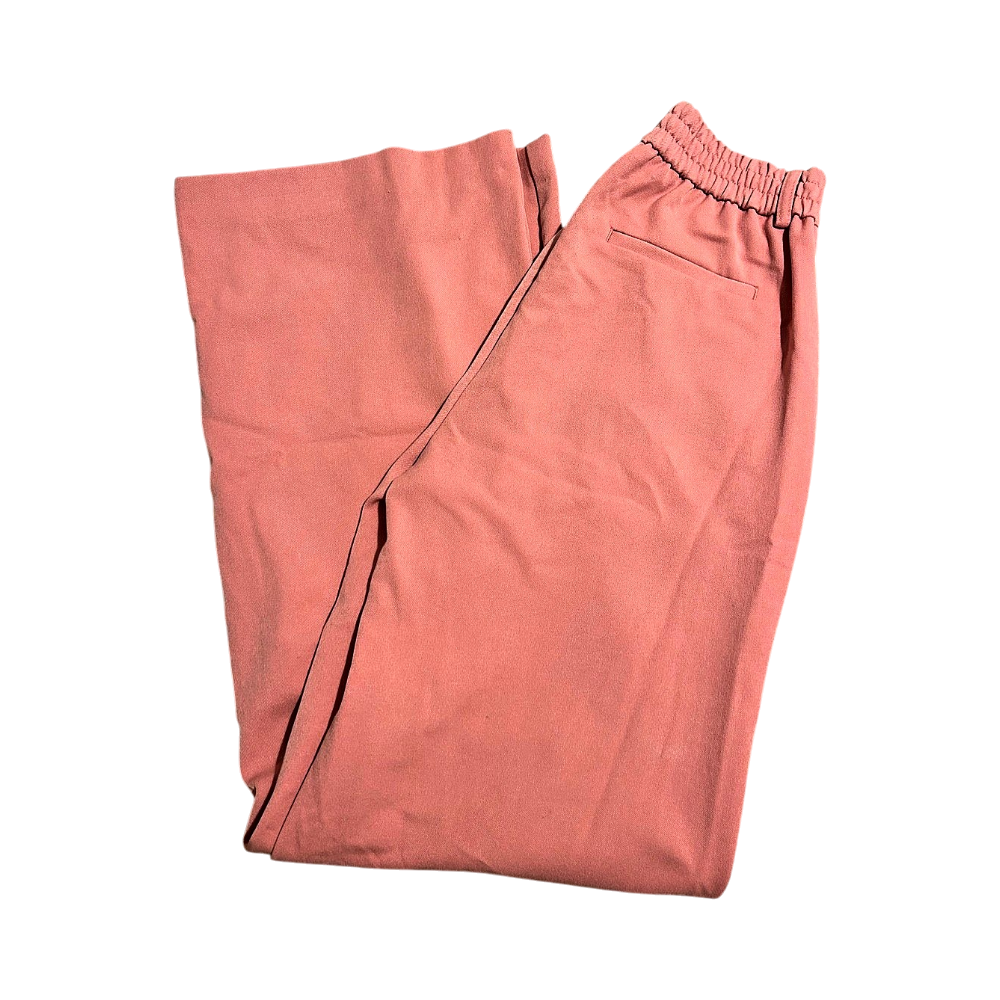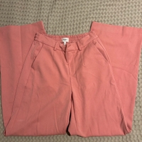 Tyylikkäät vaaleanpunaiset housut vapaa-aikaan. Vain sovitettu ja laput leikattu.