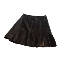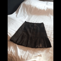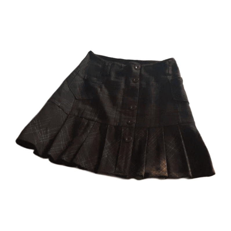 Ruudullinen hame, taskut edessä ja yksi takana, vyölenkit ja vekit helmassa. Vuorellinen, napitus edessä.