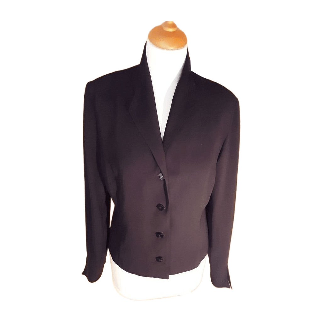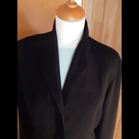 100% polyesteri. Hyvin laskeutuva, rypistymätön. Napitus edessä ja huivikaulus.