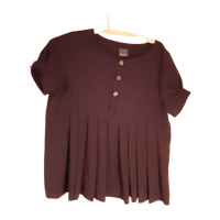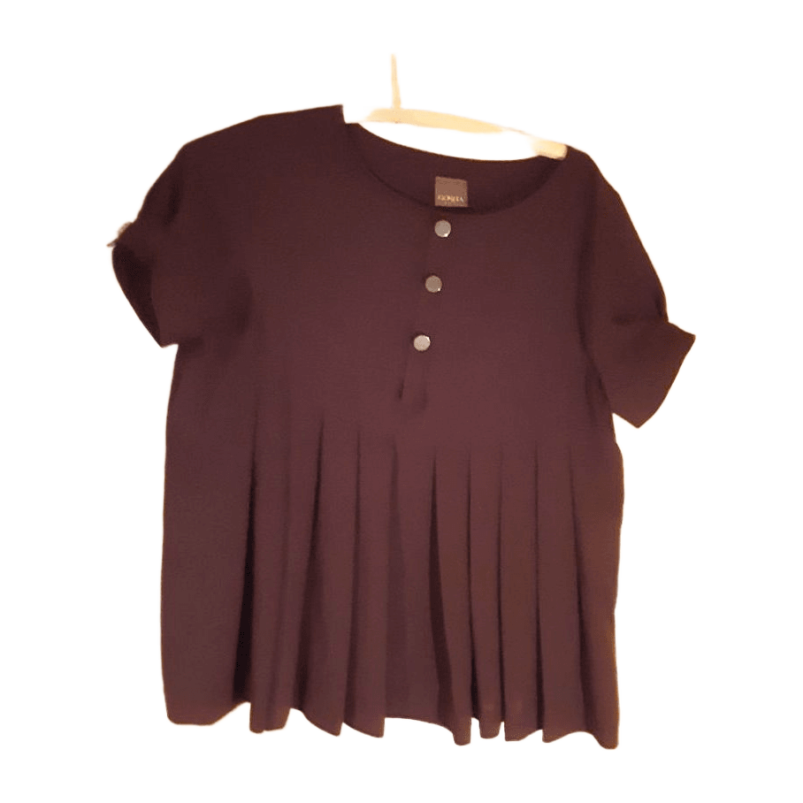 COHA-merkkinen äitiys tunika, sopii juhlaan. Hyvin laskeutuvaa materiaalia. Lyhyet hihat nappi koristeella. Laskostettu helma kainalosta alasta helmaan. Kainalo - kainalomitta 50cm.