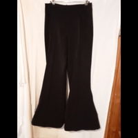 Liituraita housut juhlaan. Punaiset metallinkiiltävät raidat. Lahkeissa sivuilla laskokset, aukeavat viuhkamaisesti liikkuessa. Vyötärömitta, sivulla vetoketju. Ei koko ja materiaali merkintää koska vyötäröä kavennettu. Vyötärönympärysmitta 74cm. Vastaa koko xs -s.