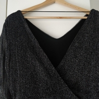 Erinomaisessa kunnossa oleva musta, kimaltava, hihallinen juhlamekko 🖤 Avara pääntie ja selusta (kuva 3). Vartalonmyötäinen istuvuus.