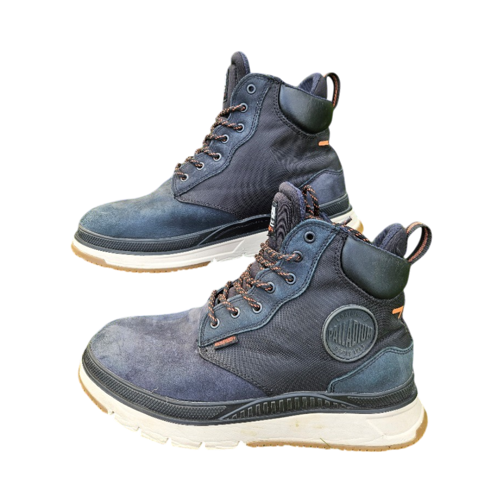 Palladium Pallasider Cuff WP+, miesten talvikengät, koko 41 (palladium pientä kokoa). Siistit ja ehjät, nupukissa kulumaa ja likaa. Väri tummansininen.