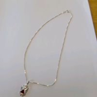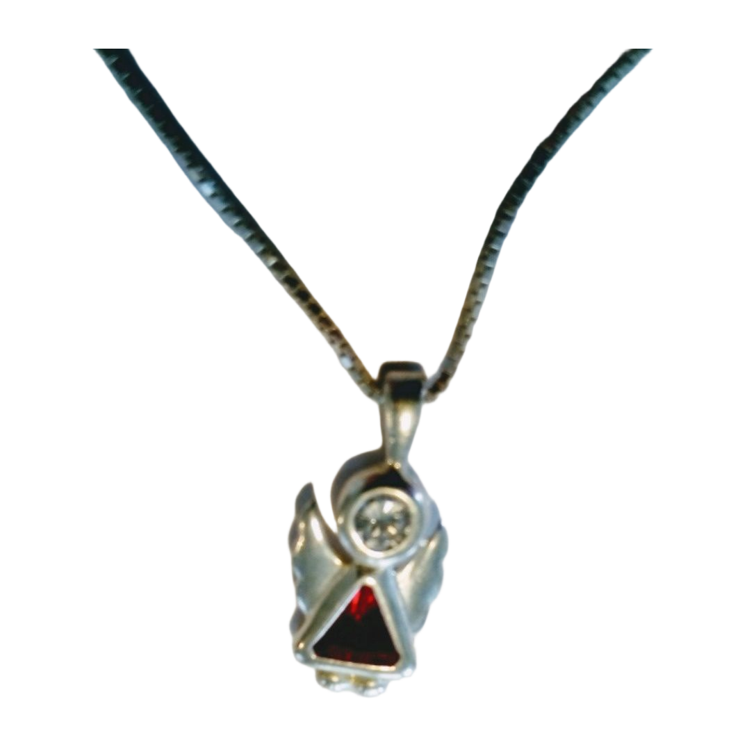 Hopeinen suojelusenkelikaulakoru 34 cm ketjulla.