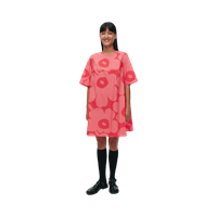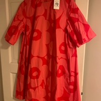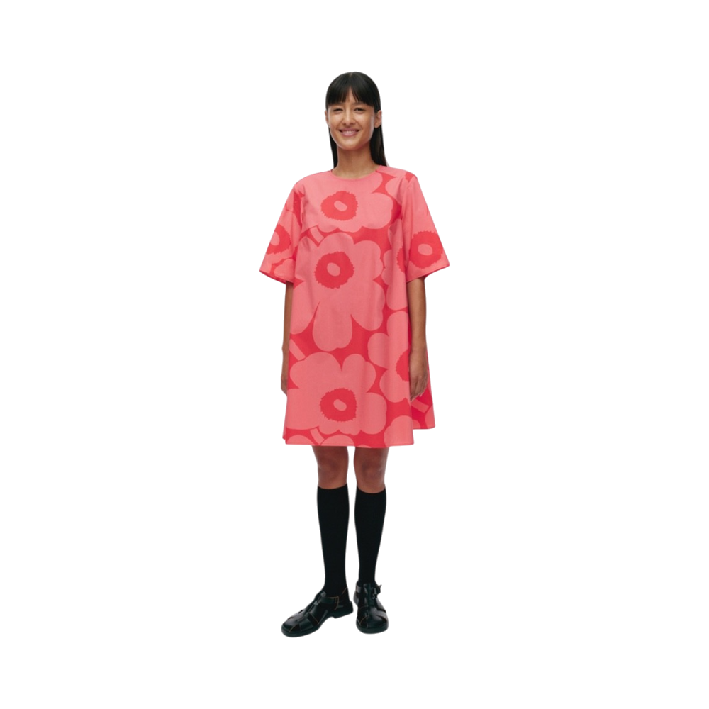 Kukkiva-mekko on valmistettu luomupuuvillapopliinista, ja siinä on niukka istuvuus sekä A-linjainen leikkaus. Tuote on käyttämätön.