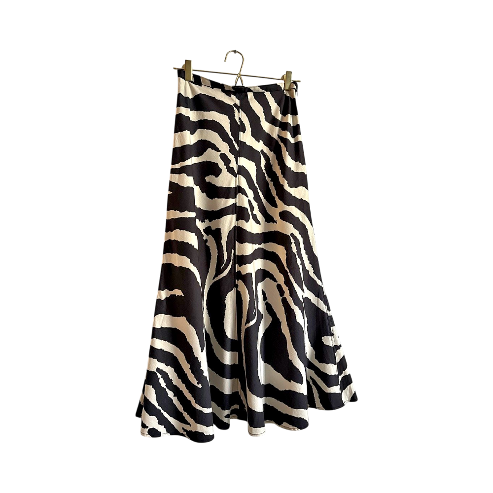 Pitkä eläinkuosinen hame paksua mutta kevyttä puuvilla-lyocell sekoitetta koossa 36. Ylhäältä istuva, ja helma levenee kauniisti alas. Käytetty kerran! Pituus noin 90cm.