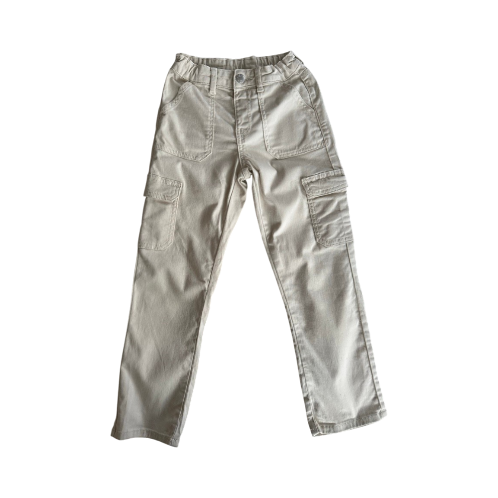 Straight-leg girls' cargo pants with multiple patch pockets.