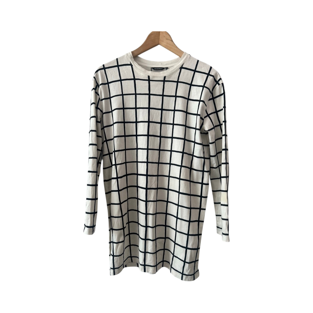 Marimekon Pinja tunika, sivulla halkiot. Koko xs, pituus 76cm ja kai kai mitta 50cm. Hyvässä kunnossa, toisessa hihassa haalea tahra, vaikea saada näkymään kuvassa.