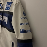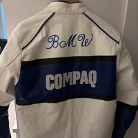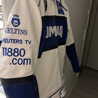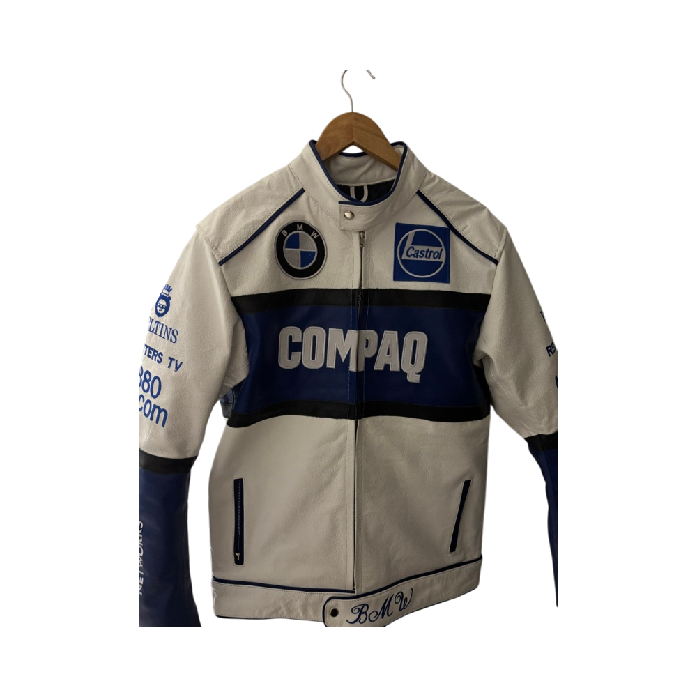 Valkoinen sinivalkoinen nahkatakki