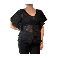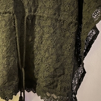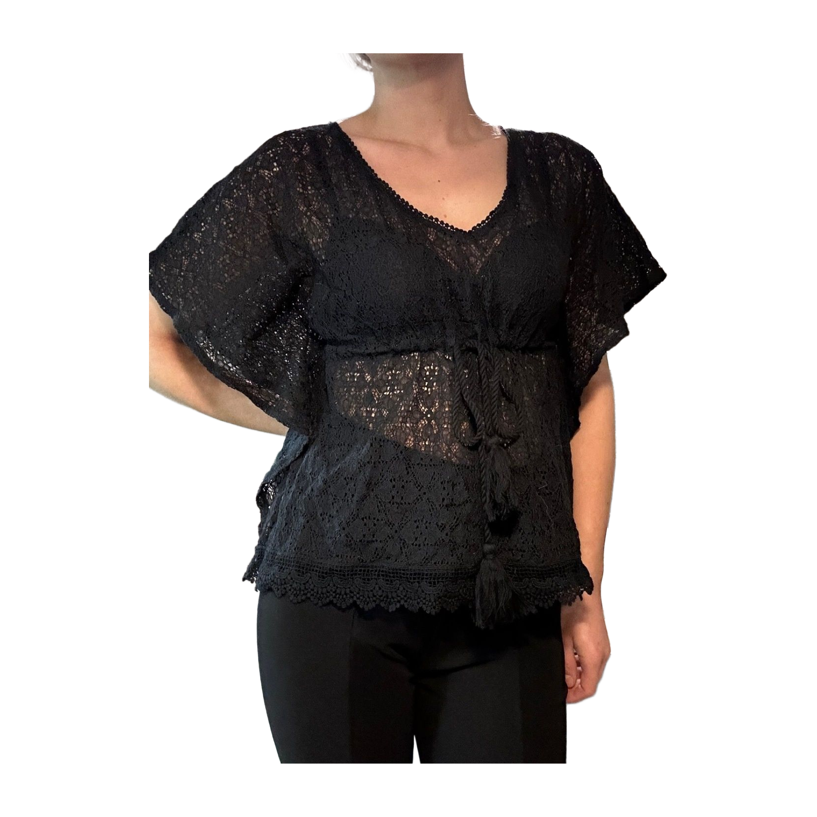 Pontso tyylinen paita, sivut ommeltu kiinni ja rintojen alla narukiristys, käyttämätön mutta lappu leikattu pois, paidasta näkyy läpi.