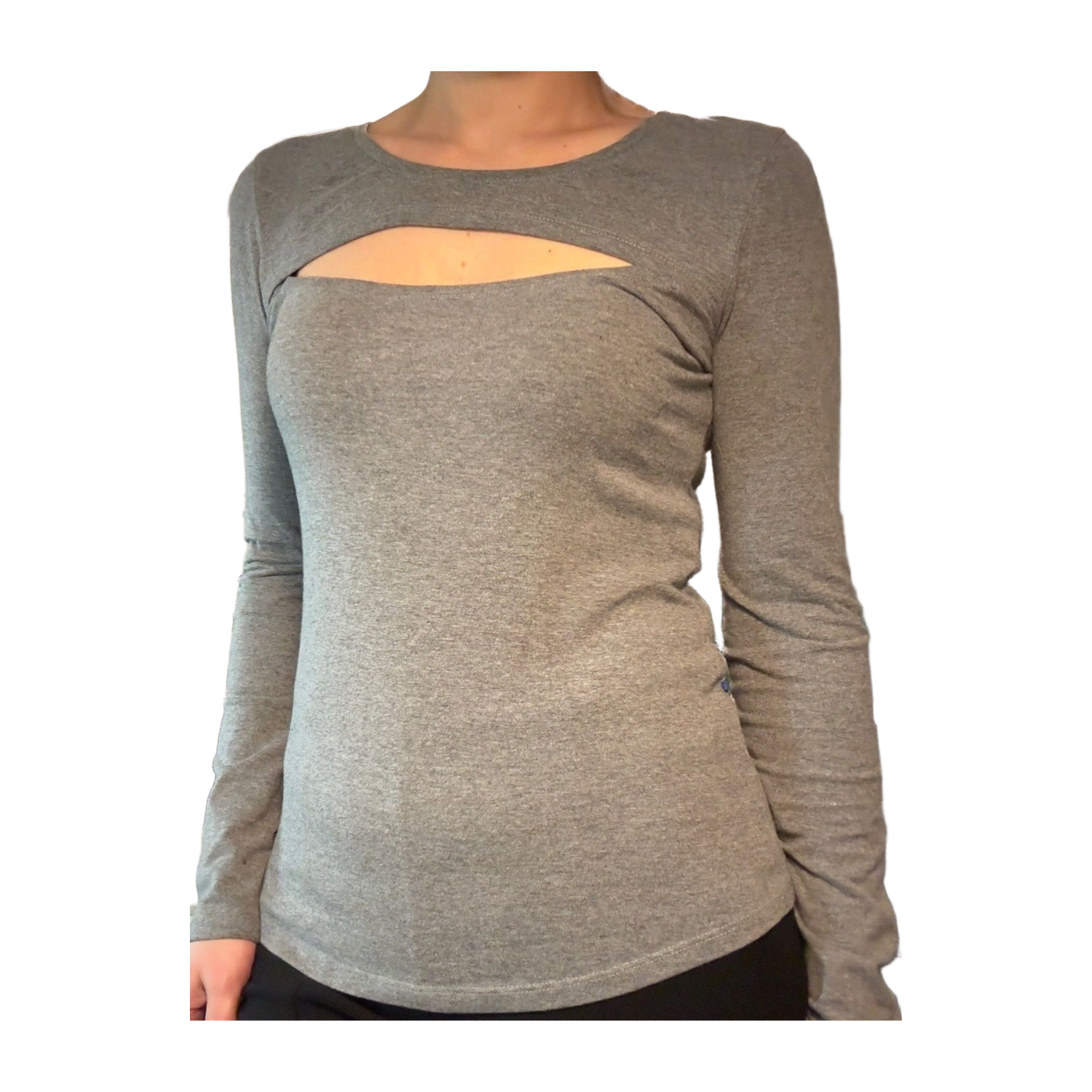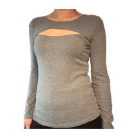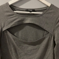 Harmaa paita jossa rinnan kohdalla aukko. Ei vikoja
