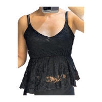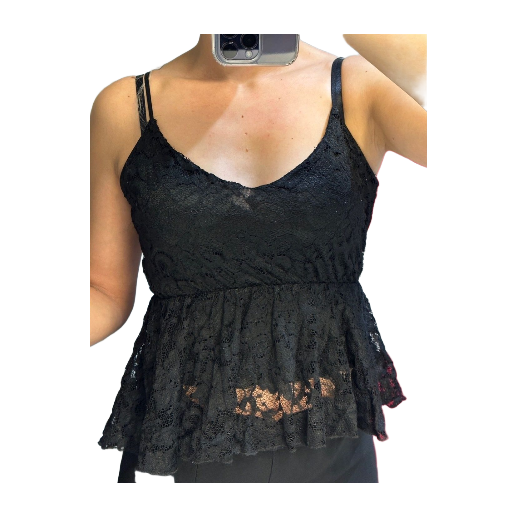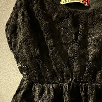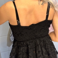 Söpö musta pitsicroptop myynnissä! S/M kokoinen, muutamia kertoja käytetty, olkaimet säädettävissä. Pitsin alla lyhyempi musta toppi ja pitsiosuus vähän pidempi 😊