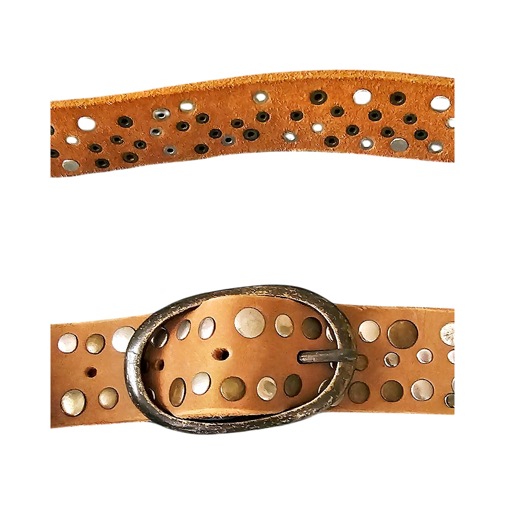 Käytetty pari kertaa, aitoa nahkaa niitein ja koristekivin. Pituus 108 cm, leveys n. 4 cm.