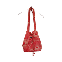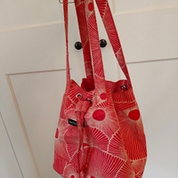 Kuviollinen Marimekko kangaslaukku, nyörikiinnitys, pitkät hihnat.