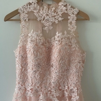 Kerran käytetty wanhojentanssimekko. Ostettu Zazabellasta uutena 520e. Koko 36, vastaa kokoa S/M, ja kokoa 38. Itse olin tuolloin kokoa M ja istui erinomaisesti. Helma leikattu vastaamaan vannehameen kanssa 167cm pituisen henkilön päälle. Myös selkää hieman ommeltu henkilökohtaiseen muotoon, mahdollista poistaa esim ratkojalla.
