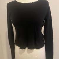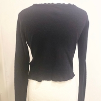 Ribbineulottu pitkähiha, röyhelöreunat, rento istuvuus.