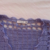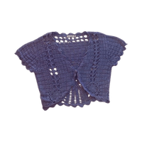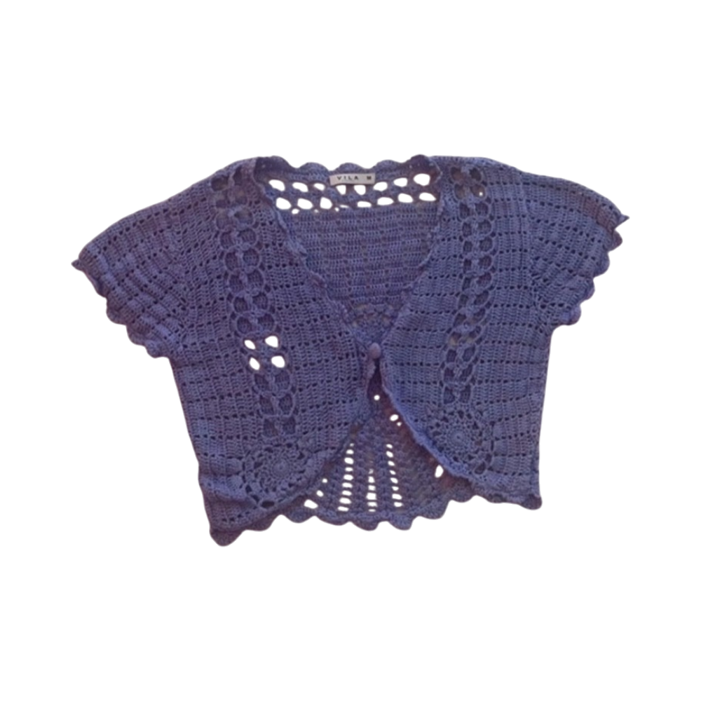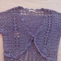 Lyhyt virkattu bolero, lila, napillinen, kevyt kesäasu.