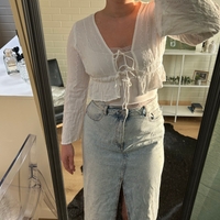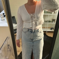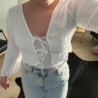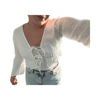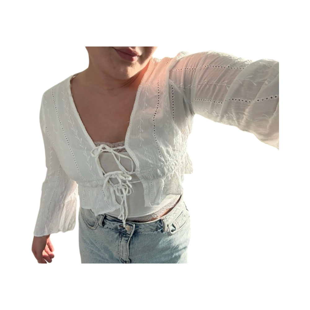 Lyhyt, pitsikuvioitu valkoinen nyöripaita naisille.