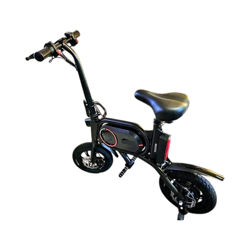 Musta sähköpotkulauta satulallaAmazing new electric city bike , foldable