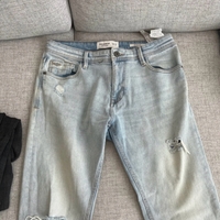 Miesten revityt farkut, moitteettomassa kunnossa ovat, malli on skinny fit ja koko EU 40/ MEX 31. Mitat: lahkeen sisäsauma n. 72cm, koko lahkeenmitta n. 95cm ja vyötärön leveys n. 39cm (kuva)